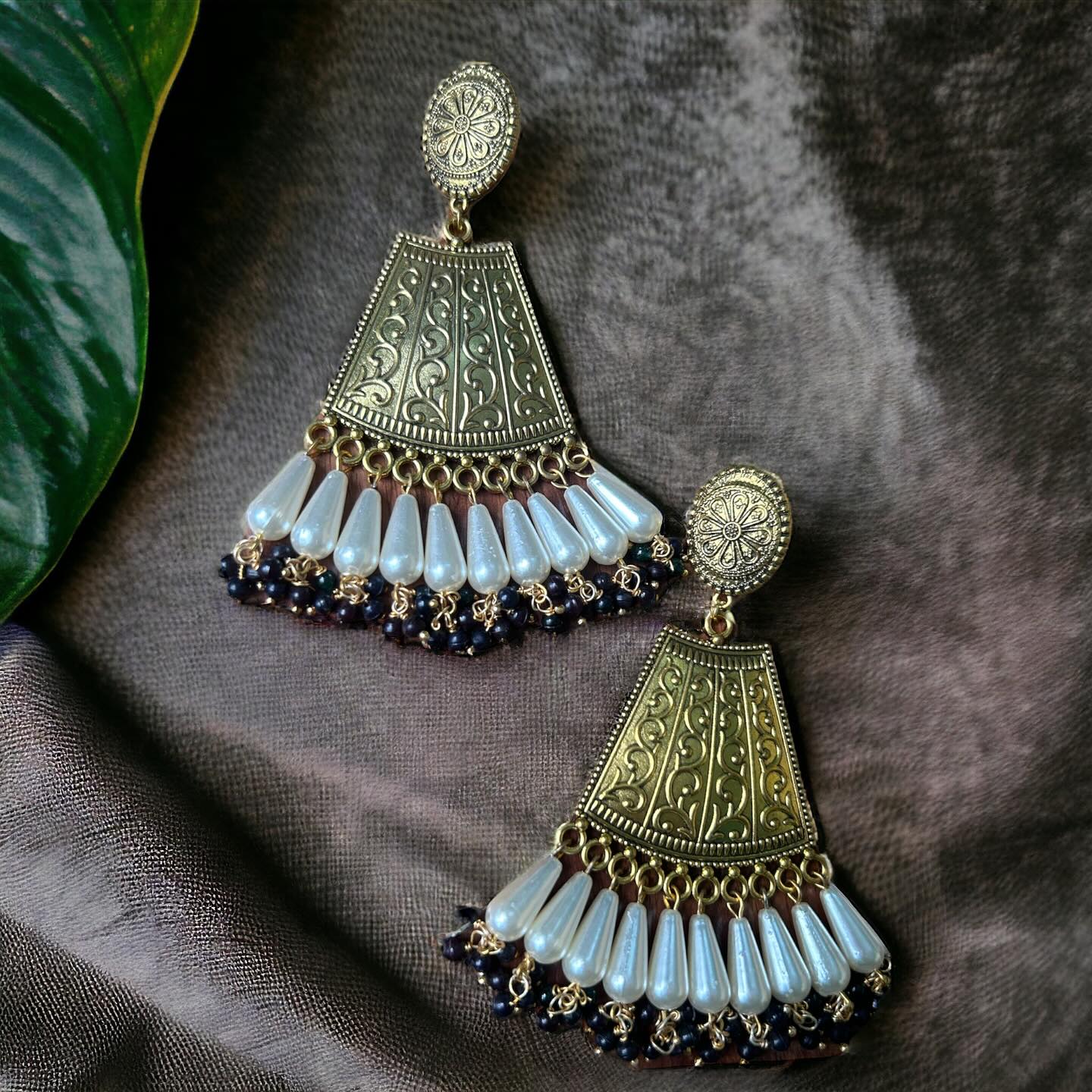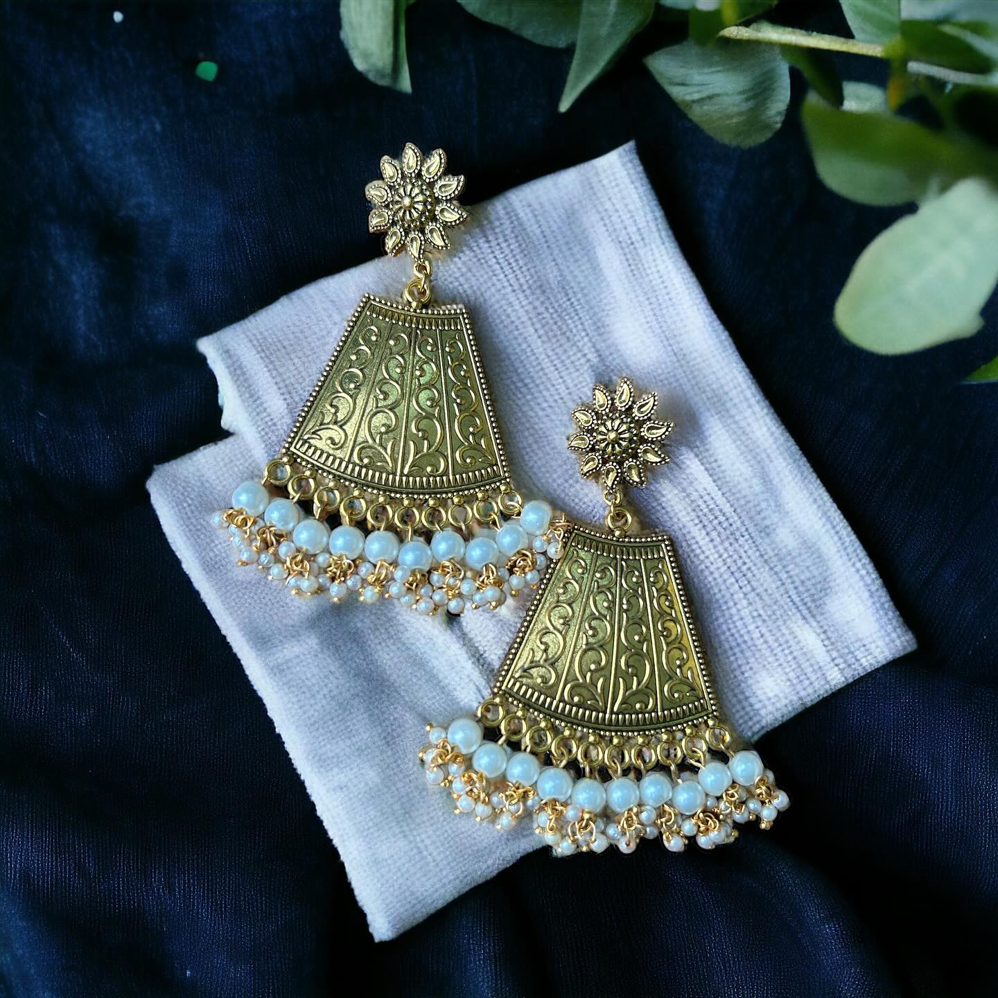 Perfect for both formal and casual occasions, these Golden Oxidized Earrings with a Smooth Finish add a touch of glamour to your look. Whether it’s a festive celebration, a cultural event, or an evening out, these earrings make a statement of style.