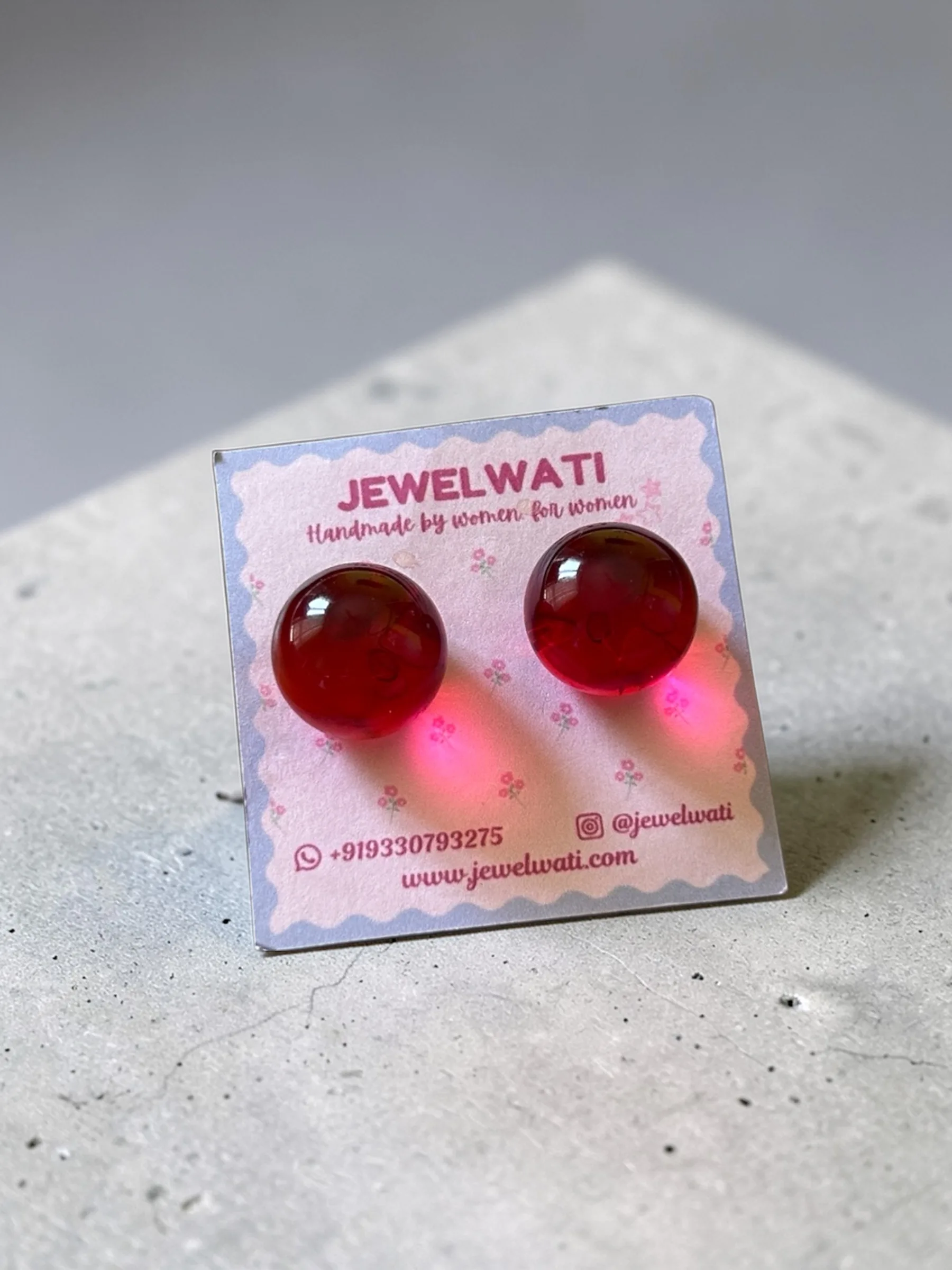 These minimal pink stud earrings feature a sleek glossy dome design with a vibrant translucent finish. Bold yet effortless, they add a pop of color to your everyday look while keeping it clean and modern.
